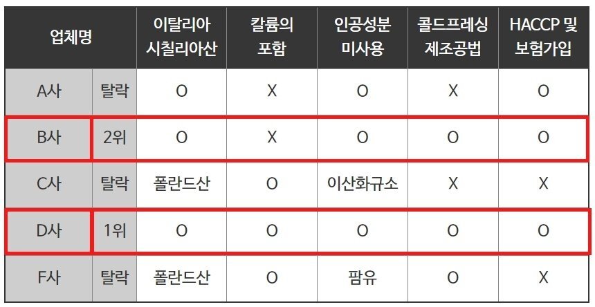 위 기준들을 모두 충족한 제품을 찾는데